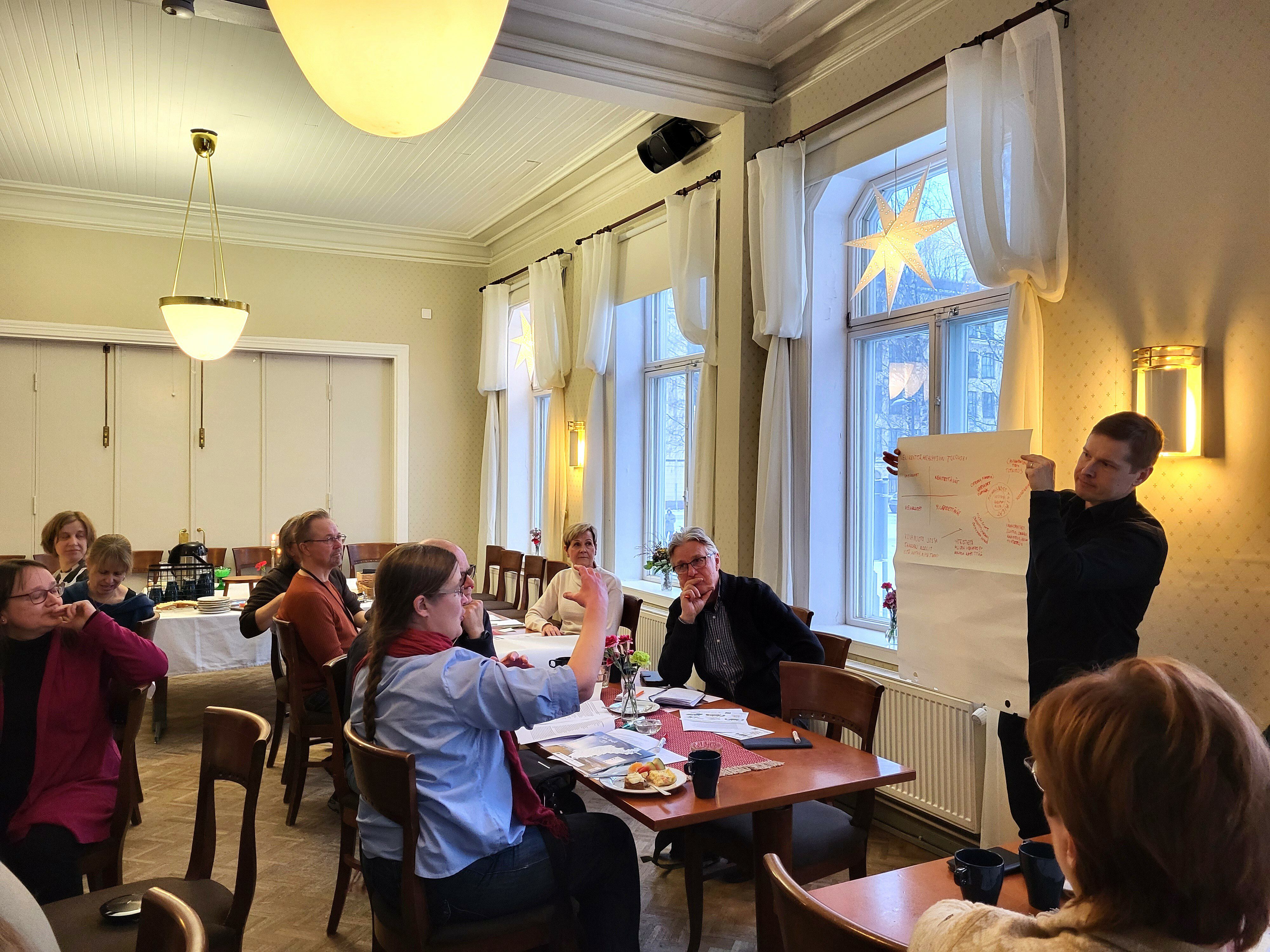 Selvitys toteutettiin loka-joulukuun 2025 aikana toteutetuilla ryhmähaastatteluilla, dokumenttianalyysillä ja yhteiskehittävillä työpajoilla. Haastattelut muotoiltiin keskusteluiksi, joissa osallistujia kutsuttiin pohtimaan paitsi verkoston nykyistä toimintaa myös sitä, mikä voisi vahvistaa vaikuttavuutta tulevaisuudessa. Näin syntynyt aineisto oli laaja-alainen ja kehittämisorientoitunut: vaikuttavuus ymmärrettiin edellytysten, käytännön toiminnan, oppimisen ja tulosten kokonaisuutena, ei yksittäisinä mittareina.