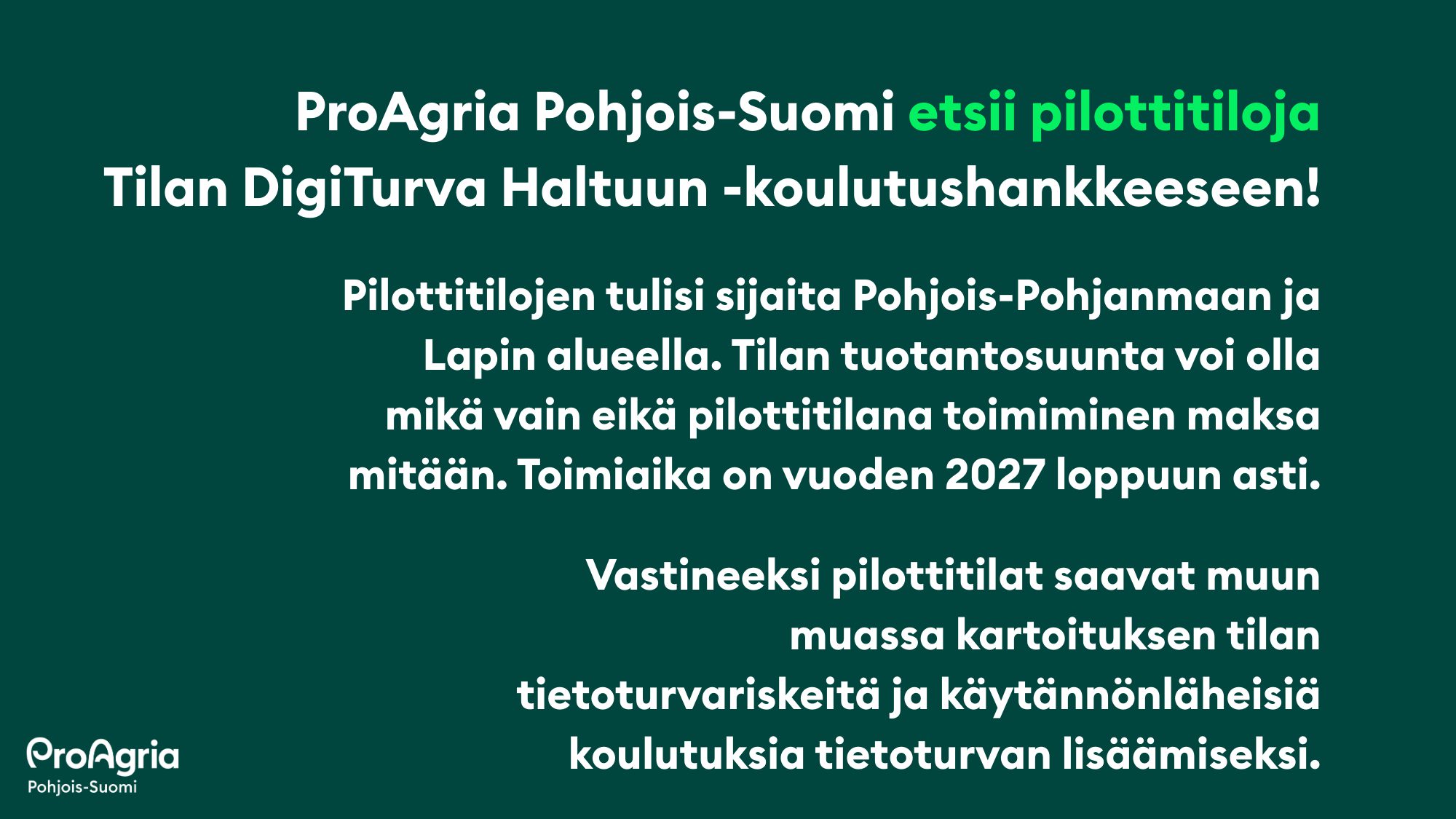 Toteuttaja: ProAgria Pohjois-Suomi ry